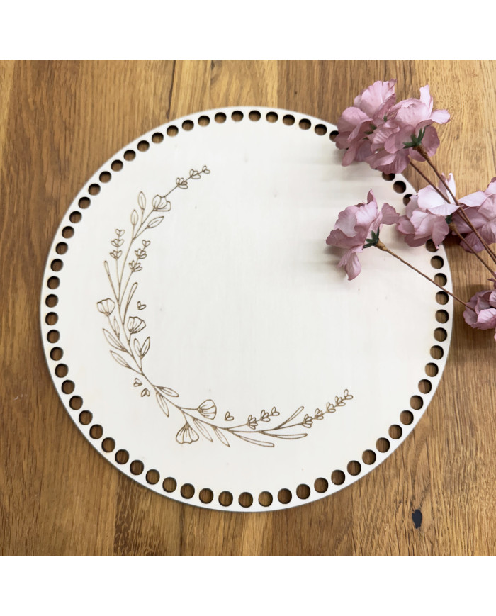 Verleihe deinen Häkelprojekten das gewisse Etwas – mit diesem hochwertig gearbeiteten Holzboden aus 4 mm starkem Sperrholz (Pappel), verziert mit einem filigranen Blumenranke als Gravur.